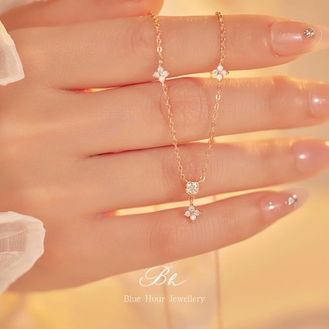 四葉のクローバー モアッサナイト ネックレス キラキラ ゴージャス ラグジュアリー モアサナイト ダイヤモンド シルバー925 ホワイト 普段使い 四つ葉 ローズゴールド ラウンド ベゼルセッティング