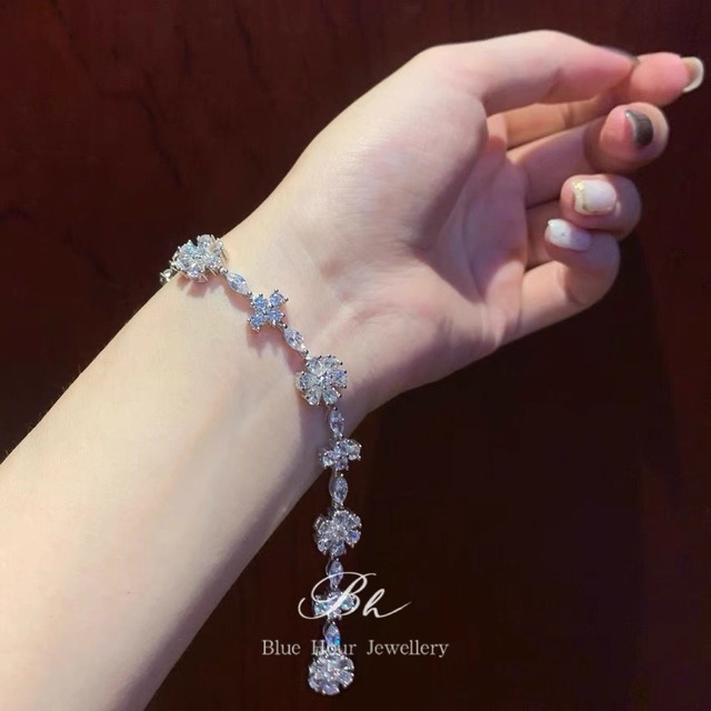 フラワー ブルー 高炭素ダイヤモンド キラキラ ゴージャス ラグジュアリー ハイカーボンダイヤモンド 人工 シルバー925 シルバー ホワイト 高級感 エタニティブレスレット レディース カラフル 夏 春 花 マーキス レトロ 青