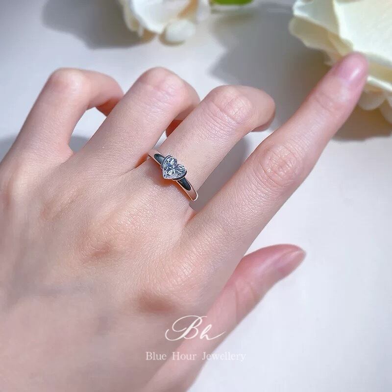 ハート ハイカーボンダイヤモンド キラキラ ゴージャス モアサナイト ダイヤモンド ソリティアリング 指輪 シルバー925 ホワイト 高炭素ダイヤモンド 1粒 一粒 シンプル 大人かわいい 可愛い | Blue Hour Milan