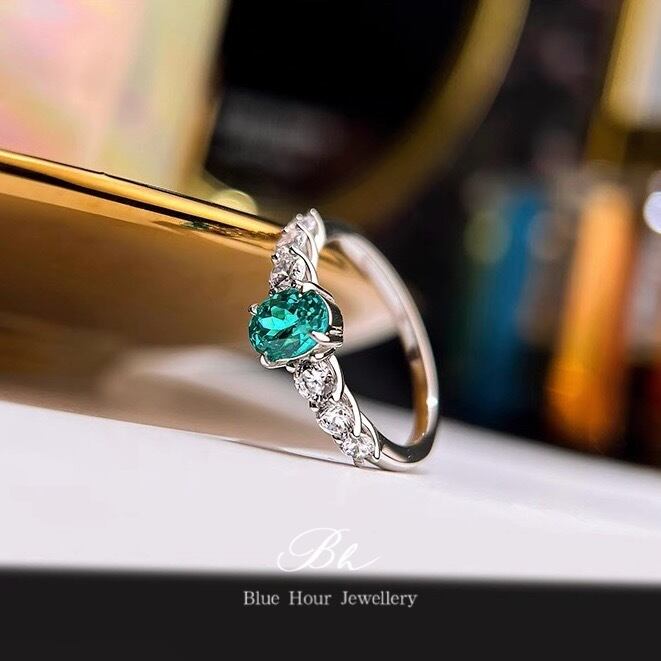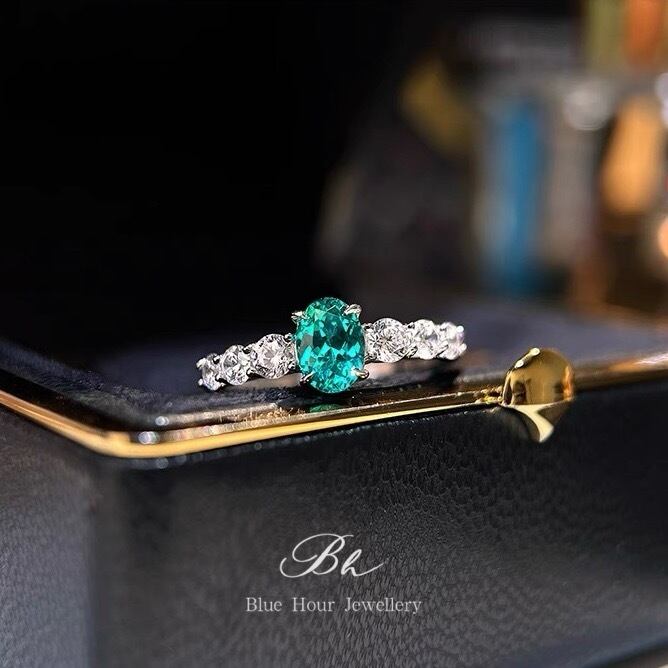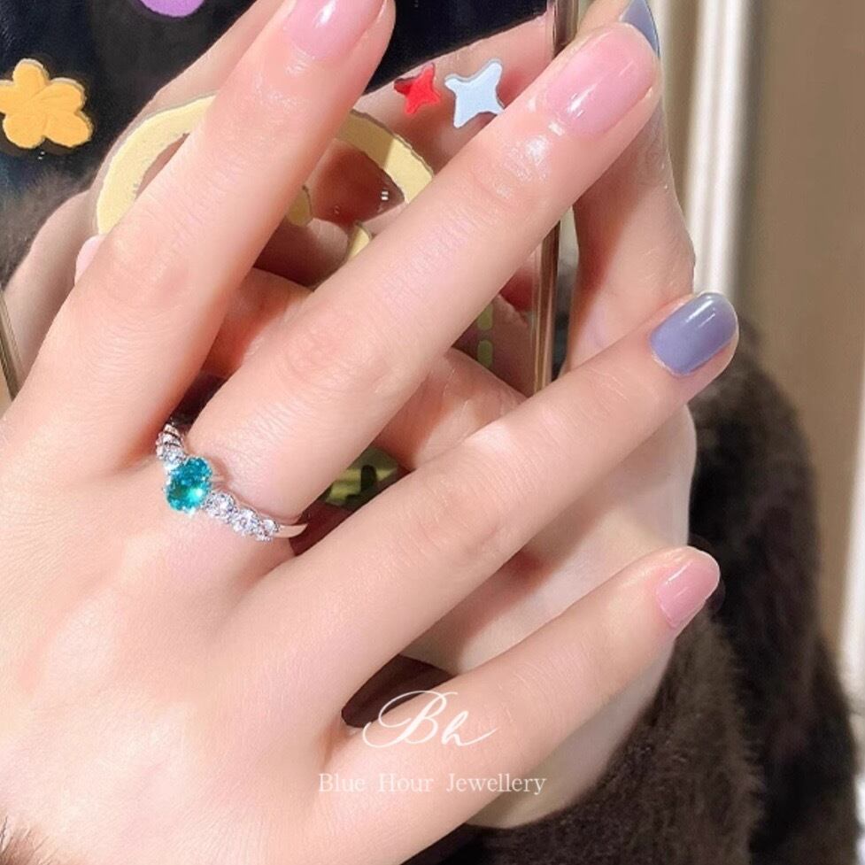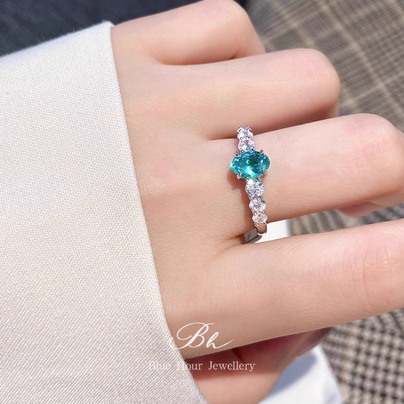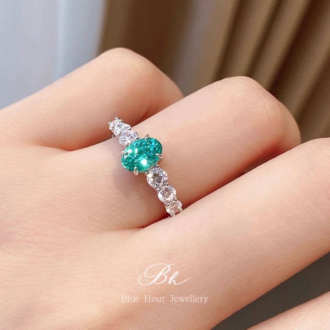 ラボグロウン 人工パライバトルマリン 1.4ct オーバル キラキラ ゴージャス ラグジュアリー リング 指輪 人工 シルバー925 シルバー ホワイト ブルー 青 グリーン 緑 人工宝石 メレタイプ | Blue Hour Milan