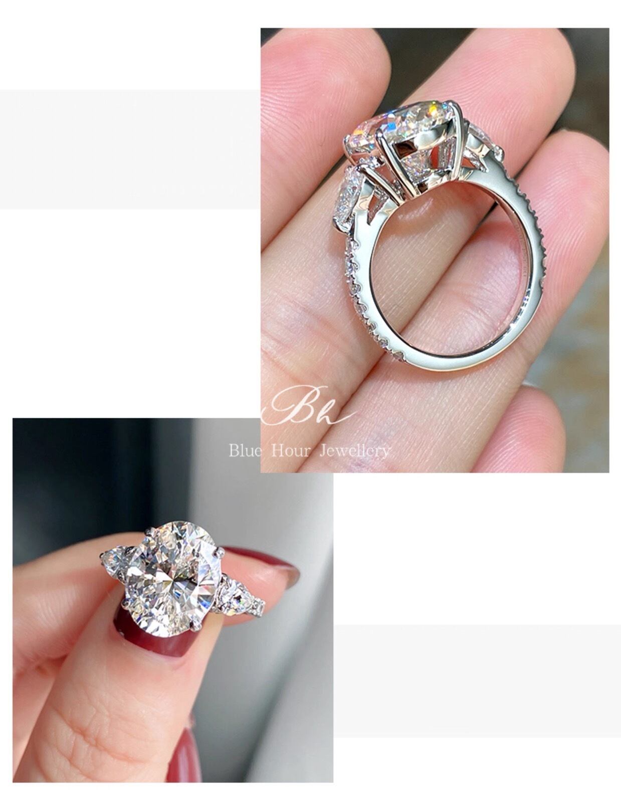 7ct オーバル 高炭素ダイヤモンド キラキラ ゴージャス ラグジュアリー リング 指輪 ハイカーボンダイヤモンド 人工 シルバー925 ホワイト エンゲージリング ビッグ ラージ ウェディング | Blue Hour Milan
