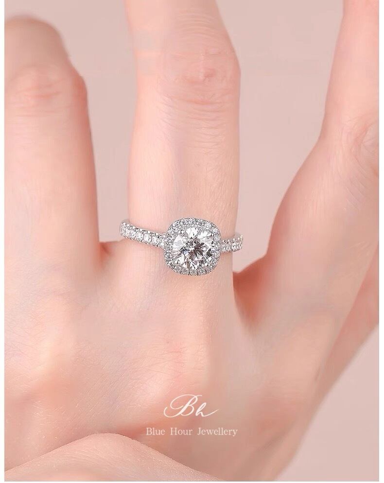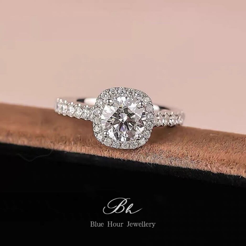 モアッサナイト 1ct ラウンド スクエア キラキラ シンプル ゴージャス ラグジュアリー ヘイローリング 指輪 エンゲージリング ラウンド ダイヤモンド メレ シルバー925 モアサナイト ホワイト | Blue Hour Milan