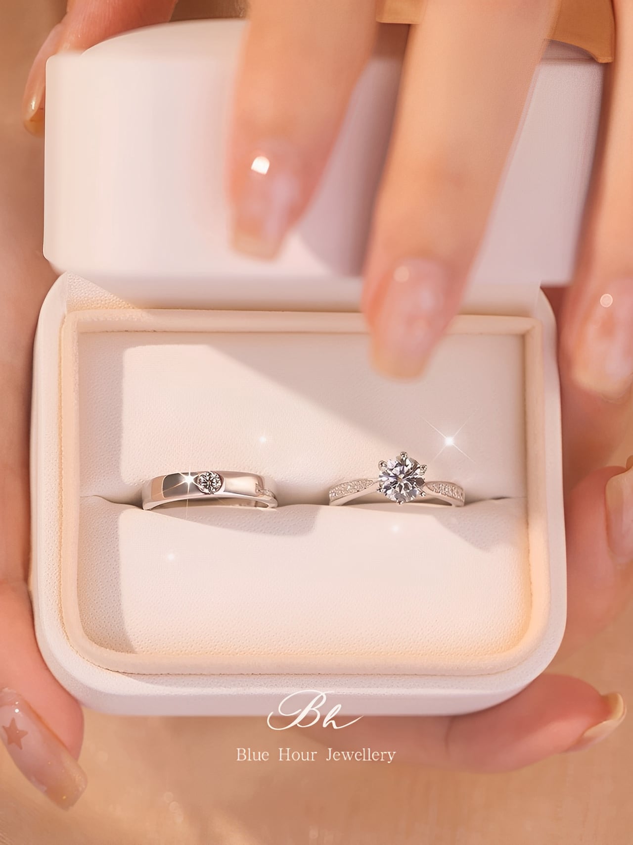 モアッサナイト 2本セット キラキラ シンプル ゴージャス ラグジュアリー 指輪 エンゲージリング ラウンド ダイヤモンド メレ シルバー925 モアサナイト ホワイト カップル ペア 夫婦 恋人 レディース メンズ 婚約指輪 安い プレゼント ギフト 記念日 | Blue Hour Milan