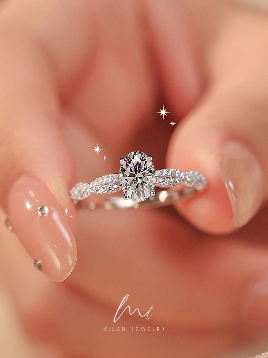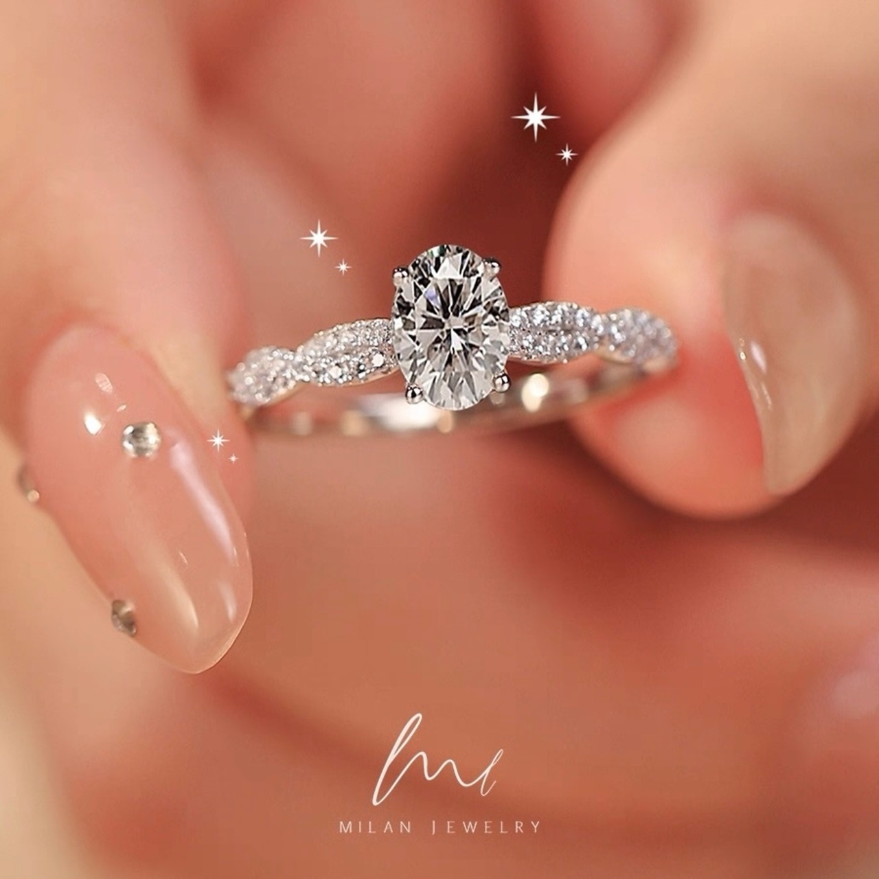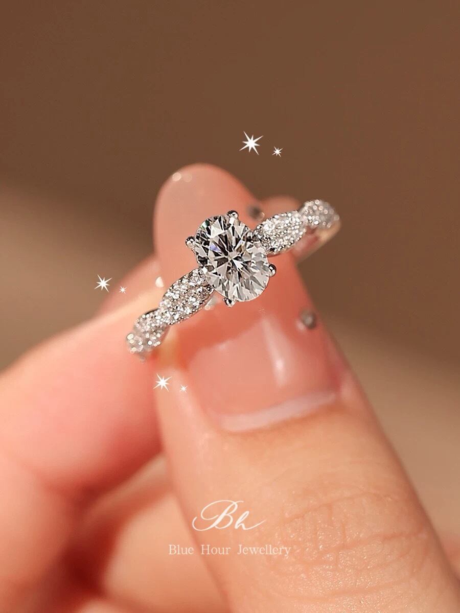 モアッサナイト オーバル キラキラ ゴージャス ラグジュアリー リング 指輪 エンゲージリング ダイヤモンド メレタイプ シルバー925 モアサナイト ホワイト レディース 小さい 小さめ ミニ レディース | Blue Hour Milan