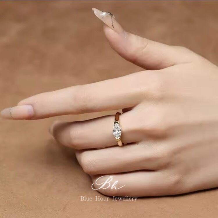 モアッサナイト マーキス キラキラ シンプル ゴージャス ソリティアリング 指輪 ダイヤモンド シルバー925 モアサナイト ホワイト クール かっこいい 1粒 一粒 イエローゴールドメッキ | Blue Hour Milan