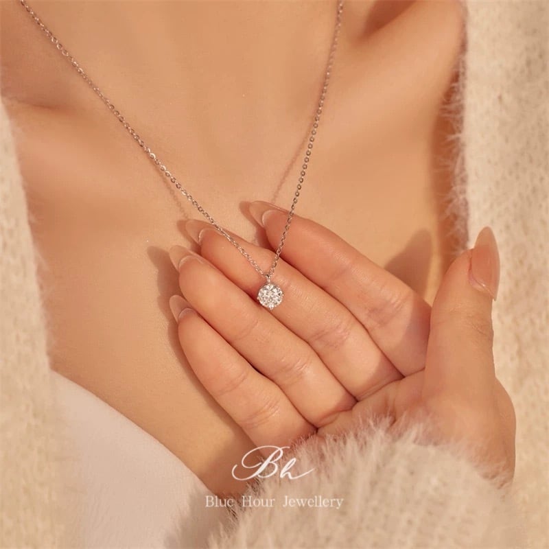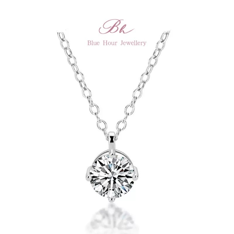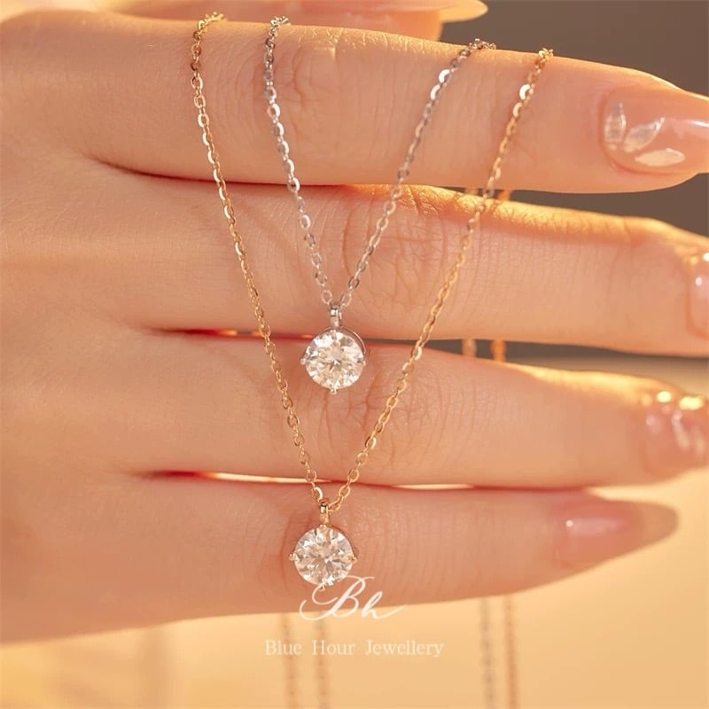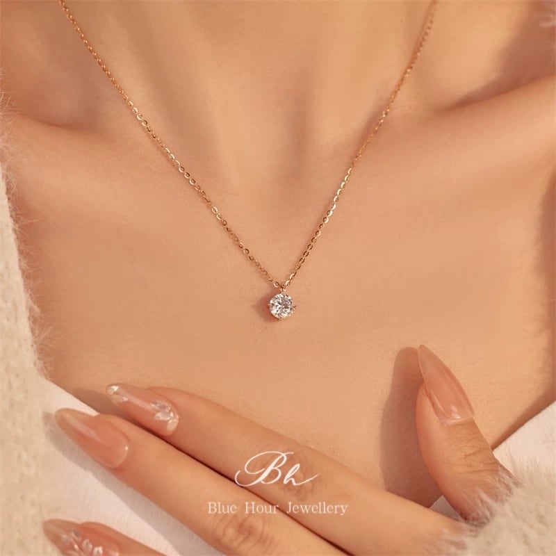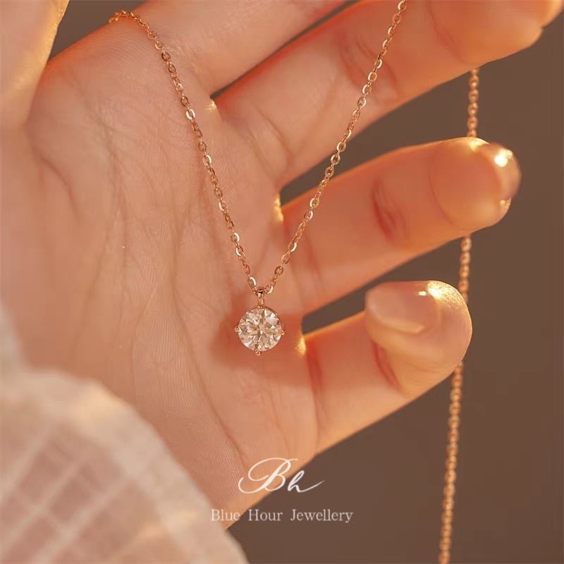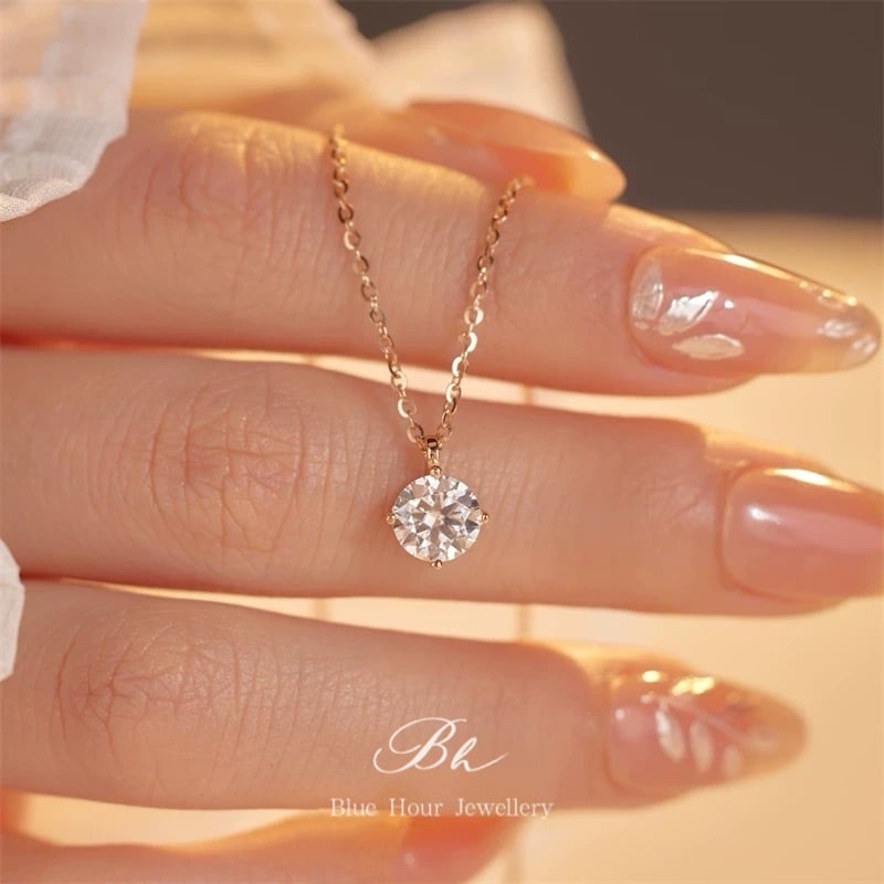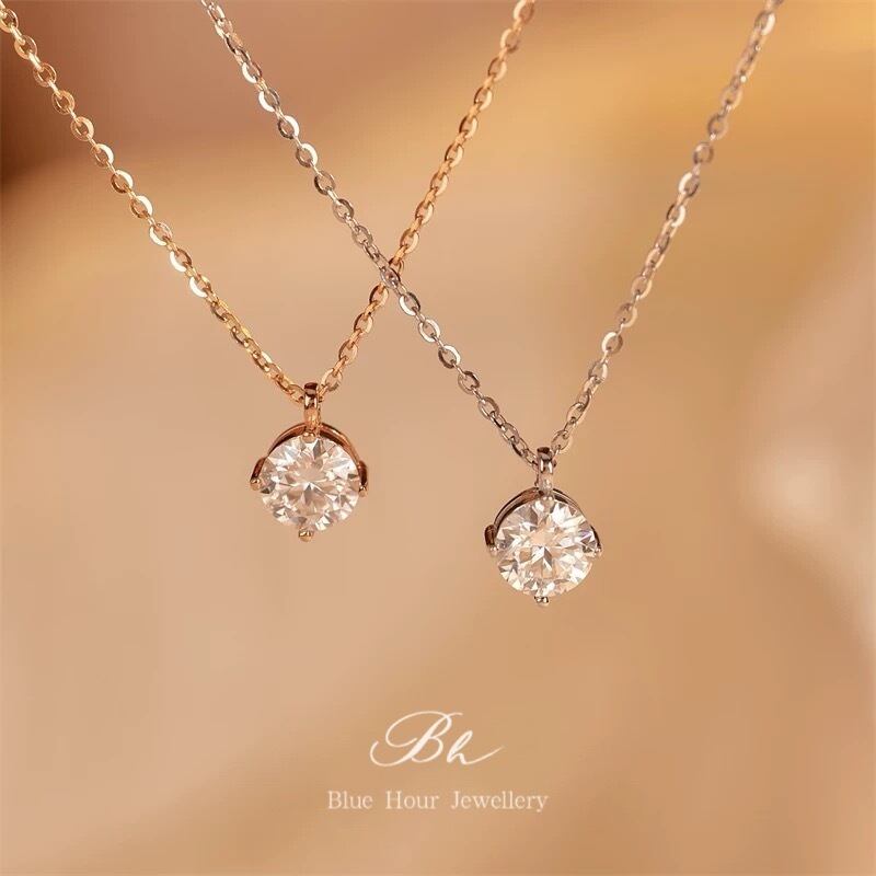 モアッサナイト ラウンド ソリティアネックレス0.3ct/0.5ct/1ct キラキラ ゴージャス モアサナイト シンプル ダイヤモンド 一粒 1粒 4本爪 ローズゴールドメッキ | Blue Hour Milan