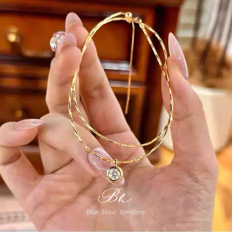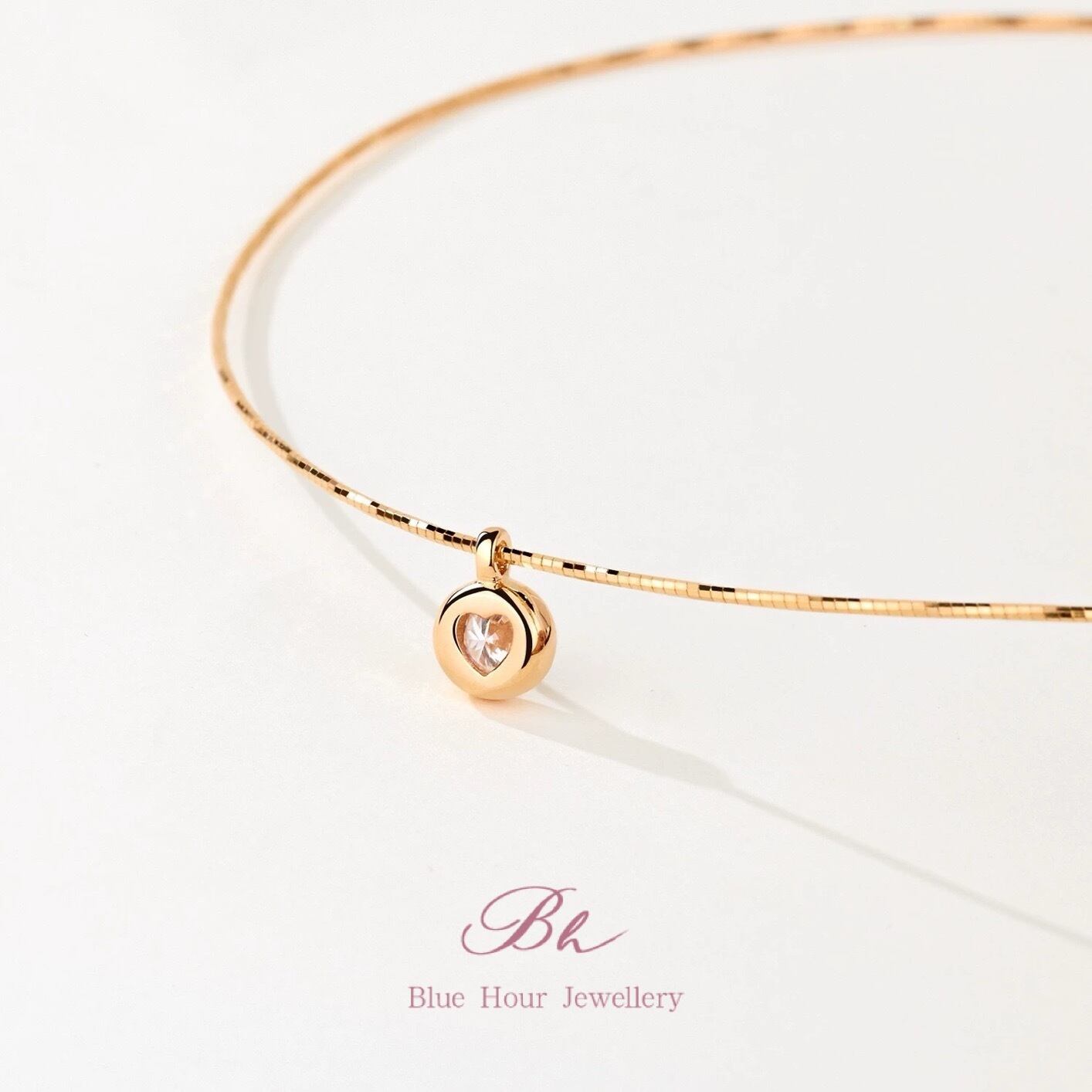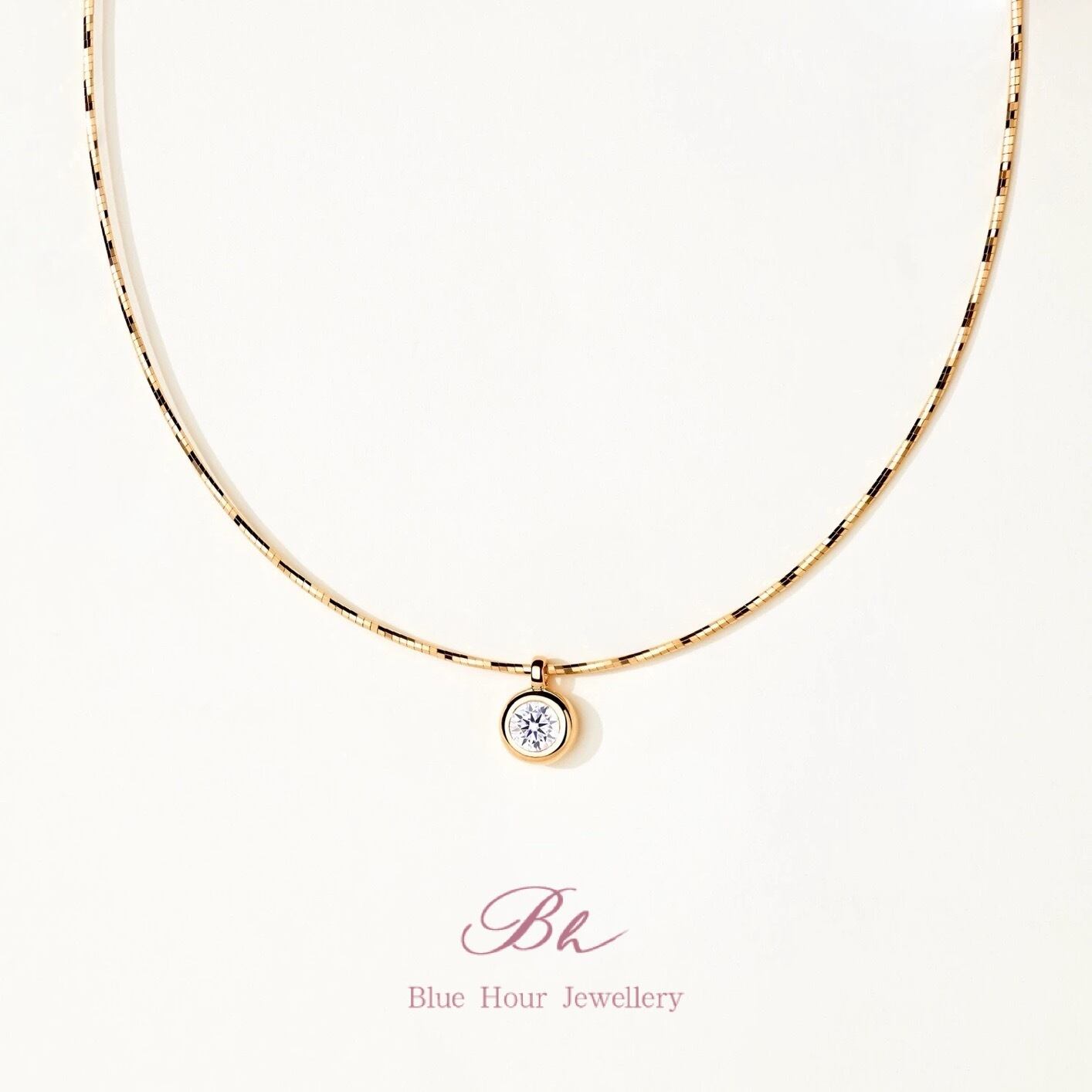 モアッサナイト ゴールドキラキラチェーン ラウンド ソリティアネックレス キラキラ ゴージャス モアサナイト シンプル ダイヤモンド 一粒 1粒 ベゼルセッティング | Blue Hour Milan