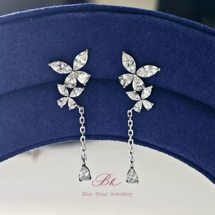蝶々 キラキラ ハイカーボンダイヤモンド ゴージャス ラグジュアリー ピアス シンプル 大人可愛い 大人かわいい 人工ダイヤモンド バタフライ ダングルピアス ドロップ ペアシェイプ