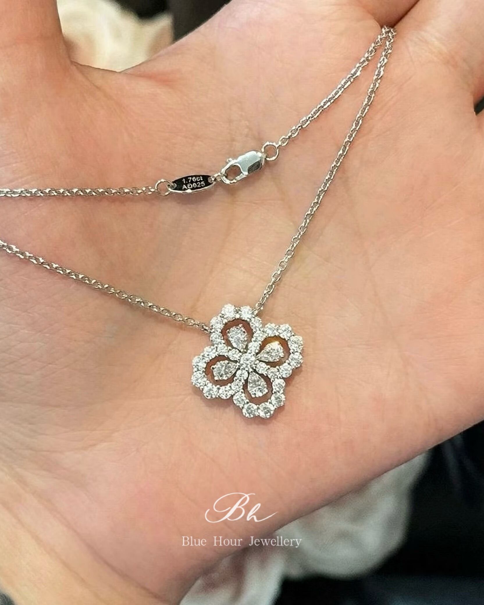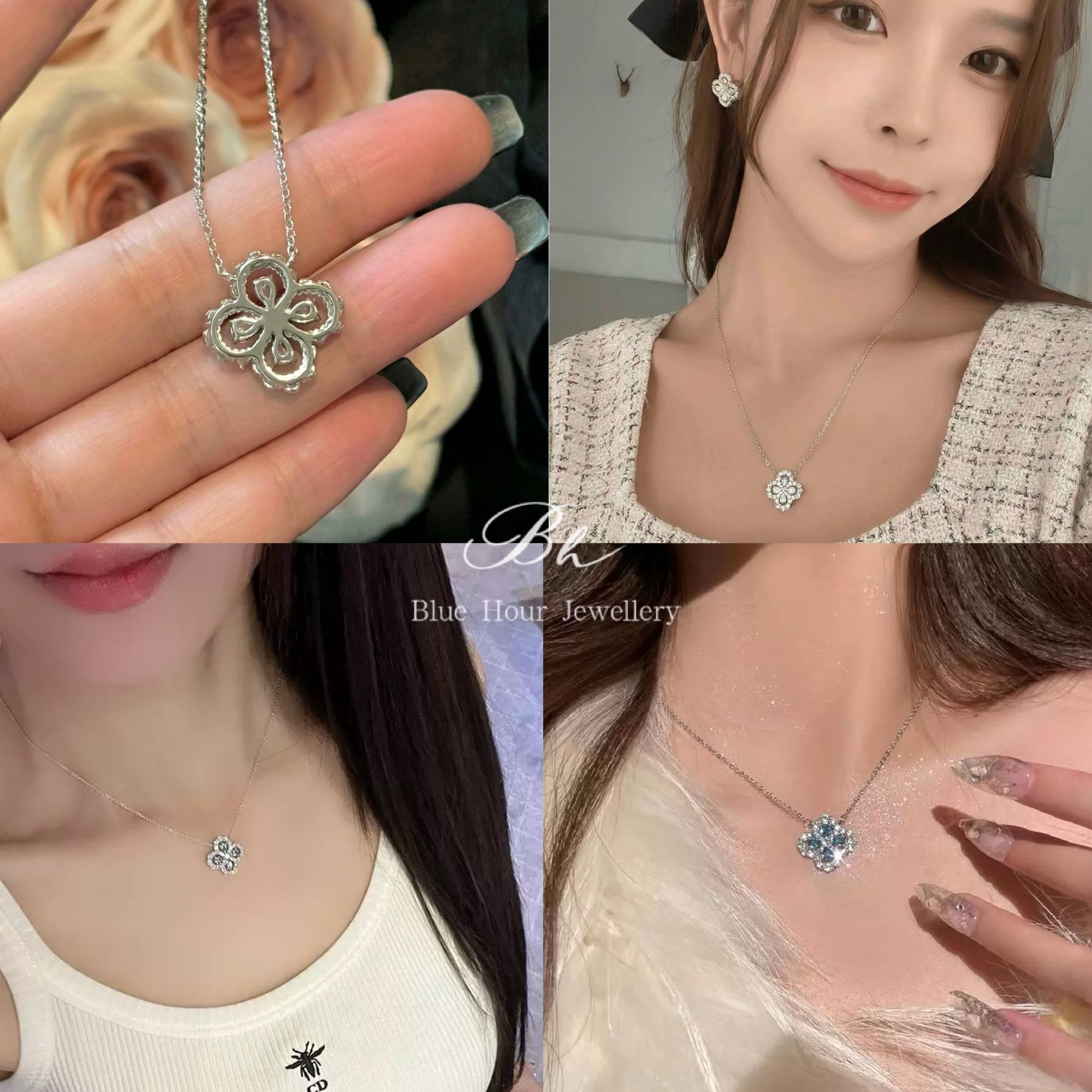 四葉のクローバー 高炭素ダイヤモンド キラキラ ゴージャス ネックレス ハイカーボンダイヤモンド 人工 シルバー925 四つ葉 カラフル レトロ フラワー 花 ホワイト アクアマリンカラー イエロー
