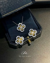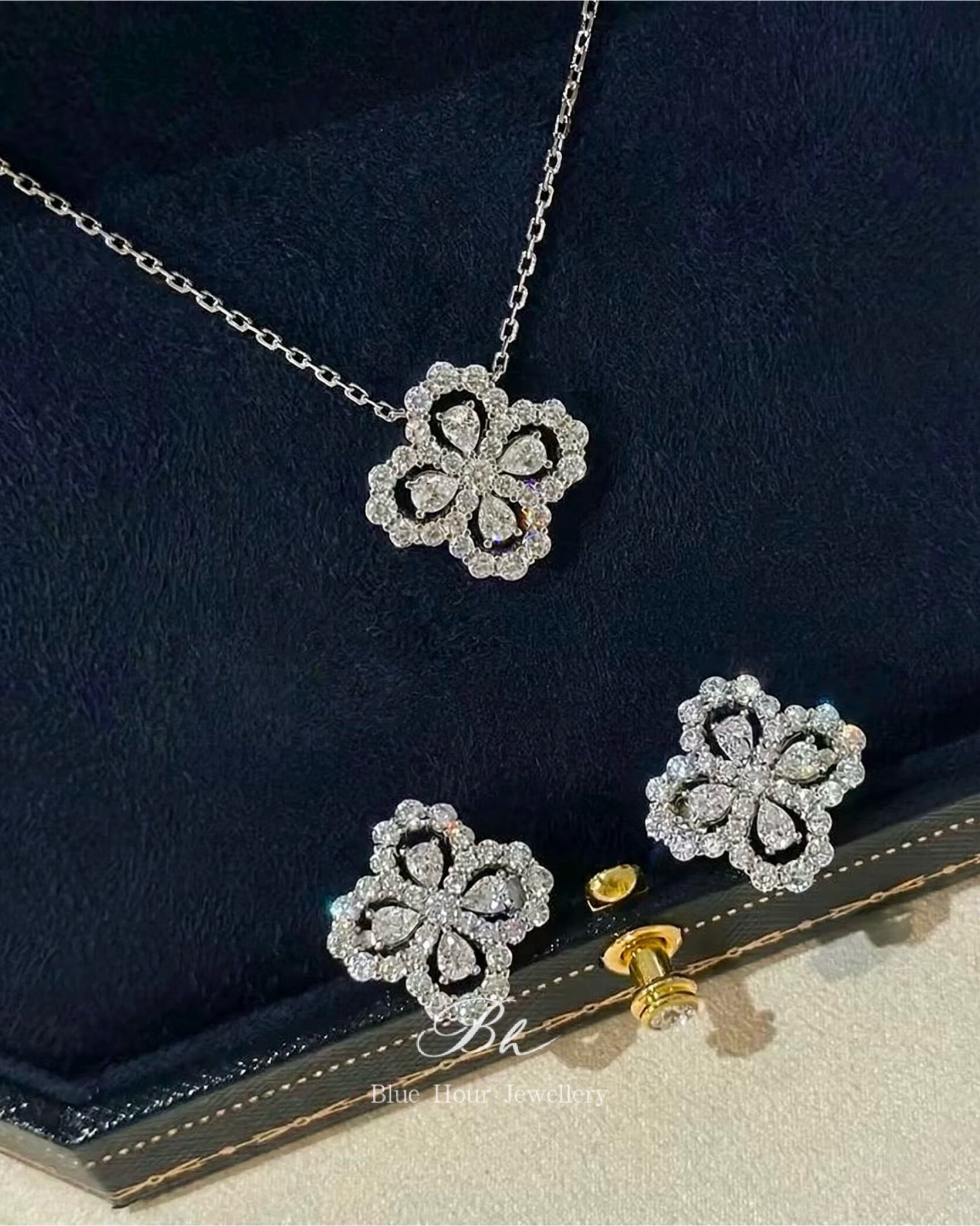 四葉のクローバー 高炭素ダイヤモンド キラキラ ゴージャス スタッドピアス ハイカーボンダイヤモンド 人工 シルバー925 四つ葉 カラフル レトロ フラワー 花 ホワイト アクアマリンカラー イエロー