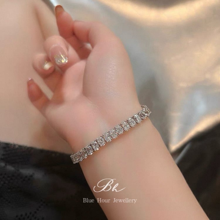 オーバルカット 高炭素ダイヤモンド キラキラ ゴージャス ラグジュアリー ハイカーボンダイヤモンド 人工 シルバー925 シルバー ホワイト テニスブレスレット 高級感 エタニティブレスレット