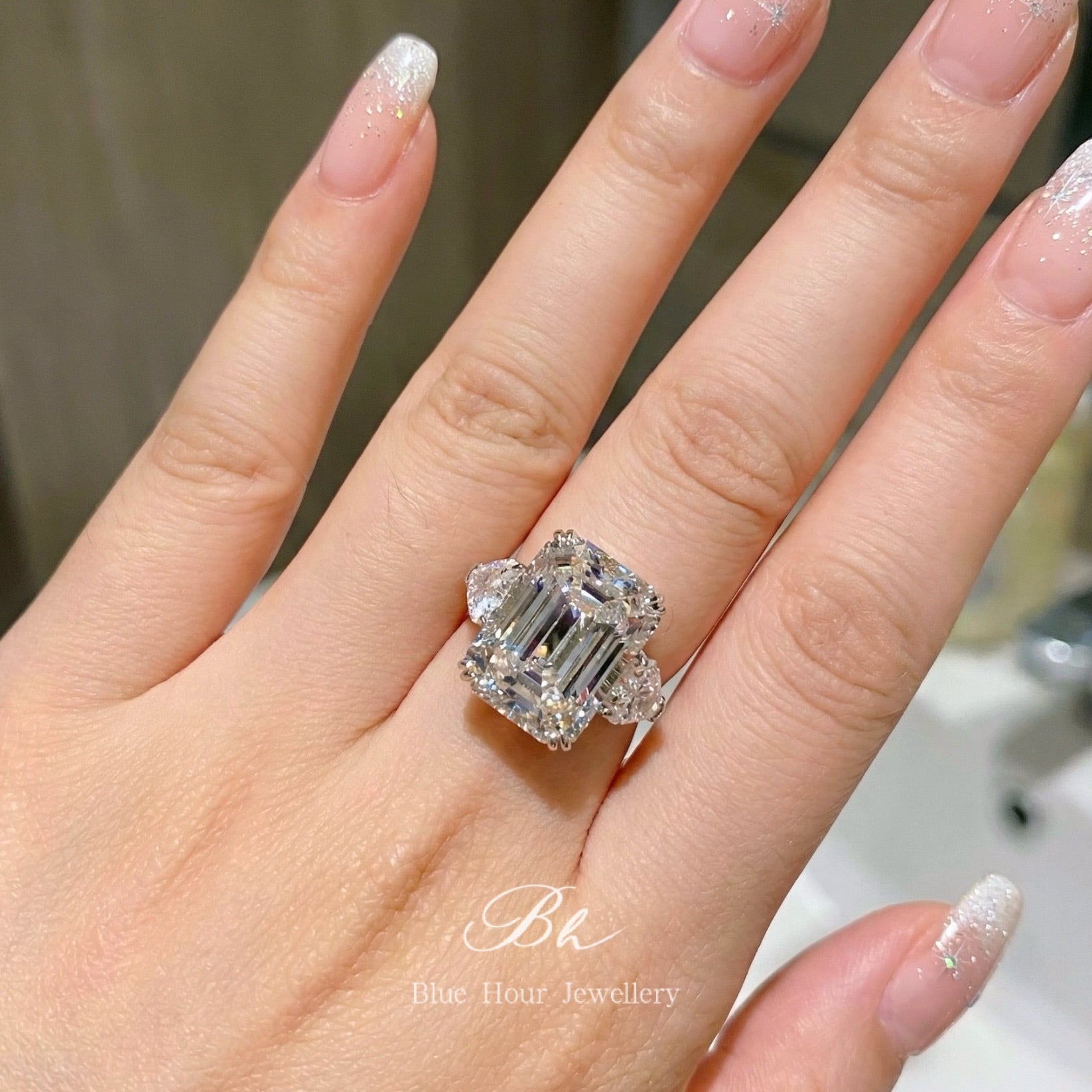 12ct エメラルドカット ハイカーボンダイヤモンド キラキラ ゴージャス ラグジュアリー リング 指輪 シルバー925 ホワイト 高級感 レトロ 人工宝石 ビッグ ラージ エンゲージリング