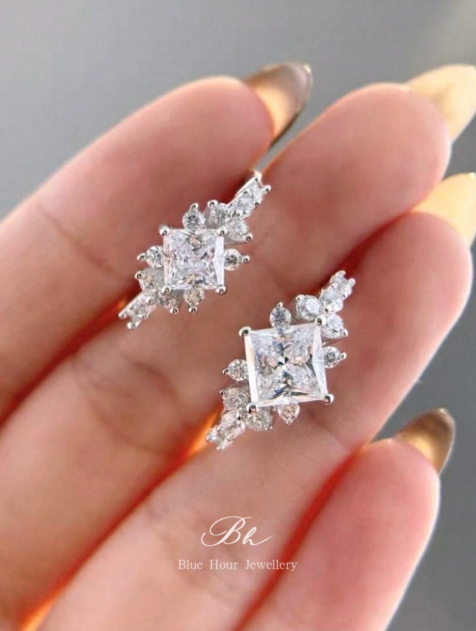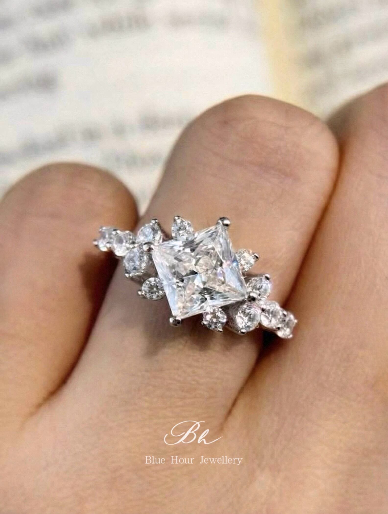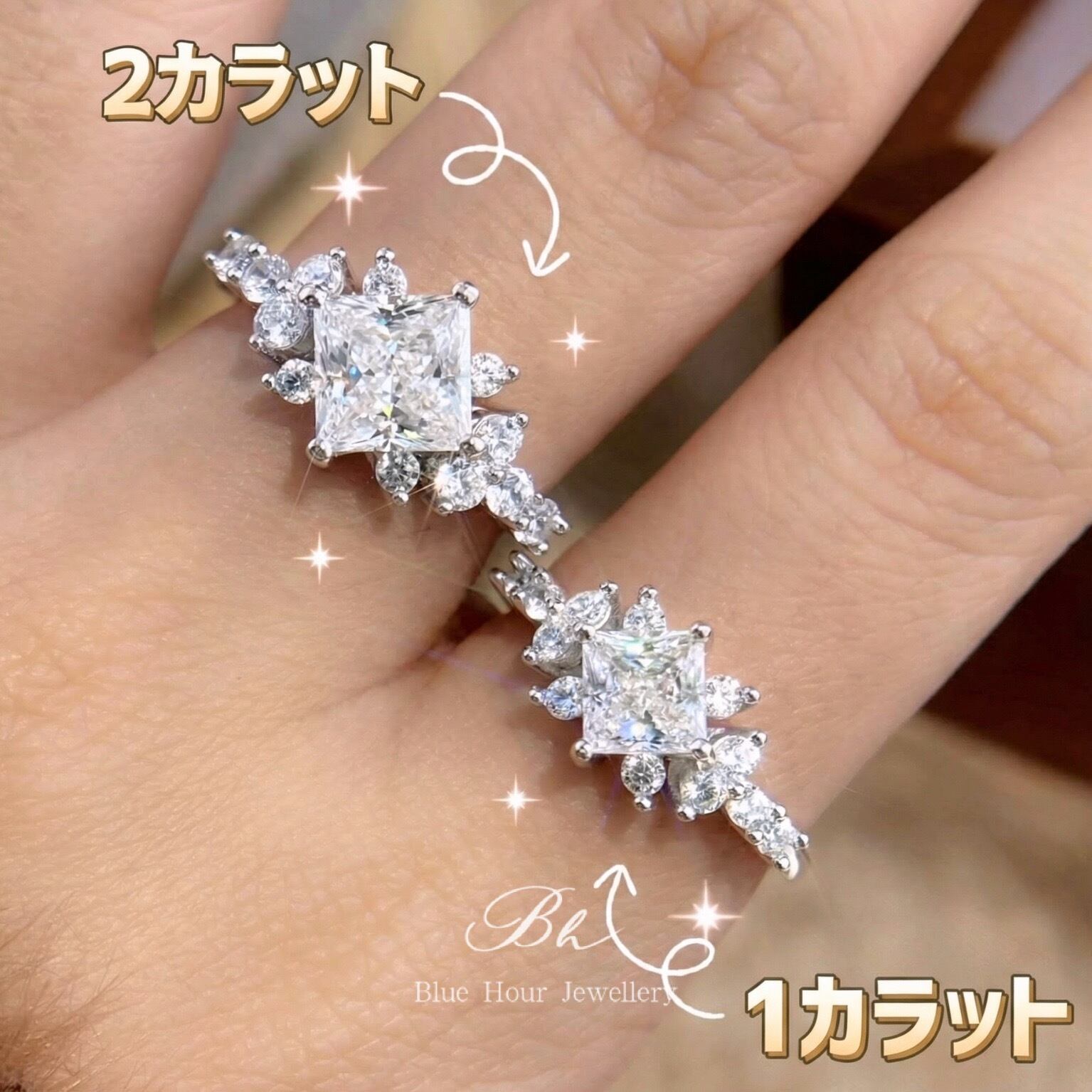 プリンセスカット 高炭素ダイヤモンド/モアサナイト キラキラ ゴージャス リング 指輪 ハイカーボンダイヤモンド 人工 シルバー925 ホワイト 高級感 モアッサナイト