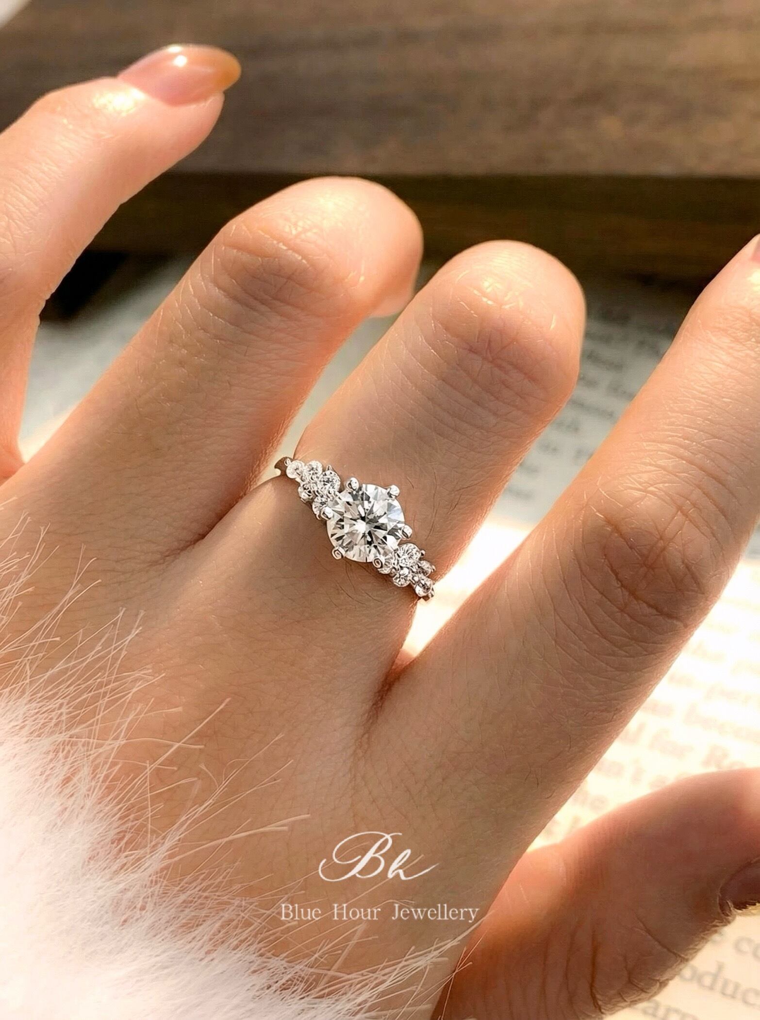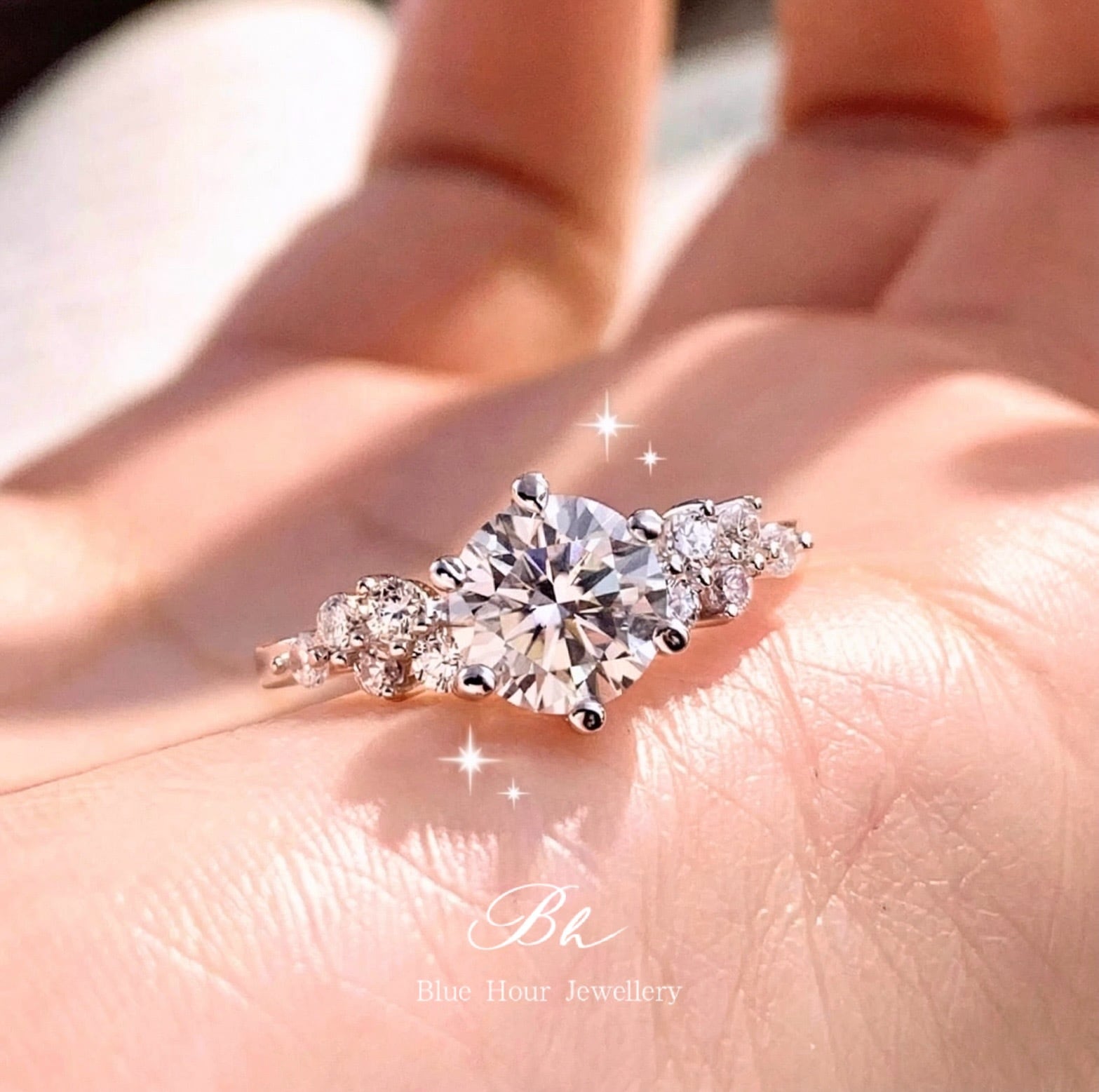 ラウンド 高炭素ダイヤモンド/モアサナイト キラキラ ゴージャス リング 指輪 ハイカーボンダイヤモンド 人工 シルバー925 ホワイト 高級感 モアッサナイト エンゲージリングにも