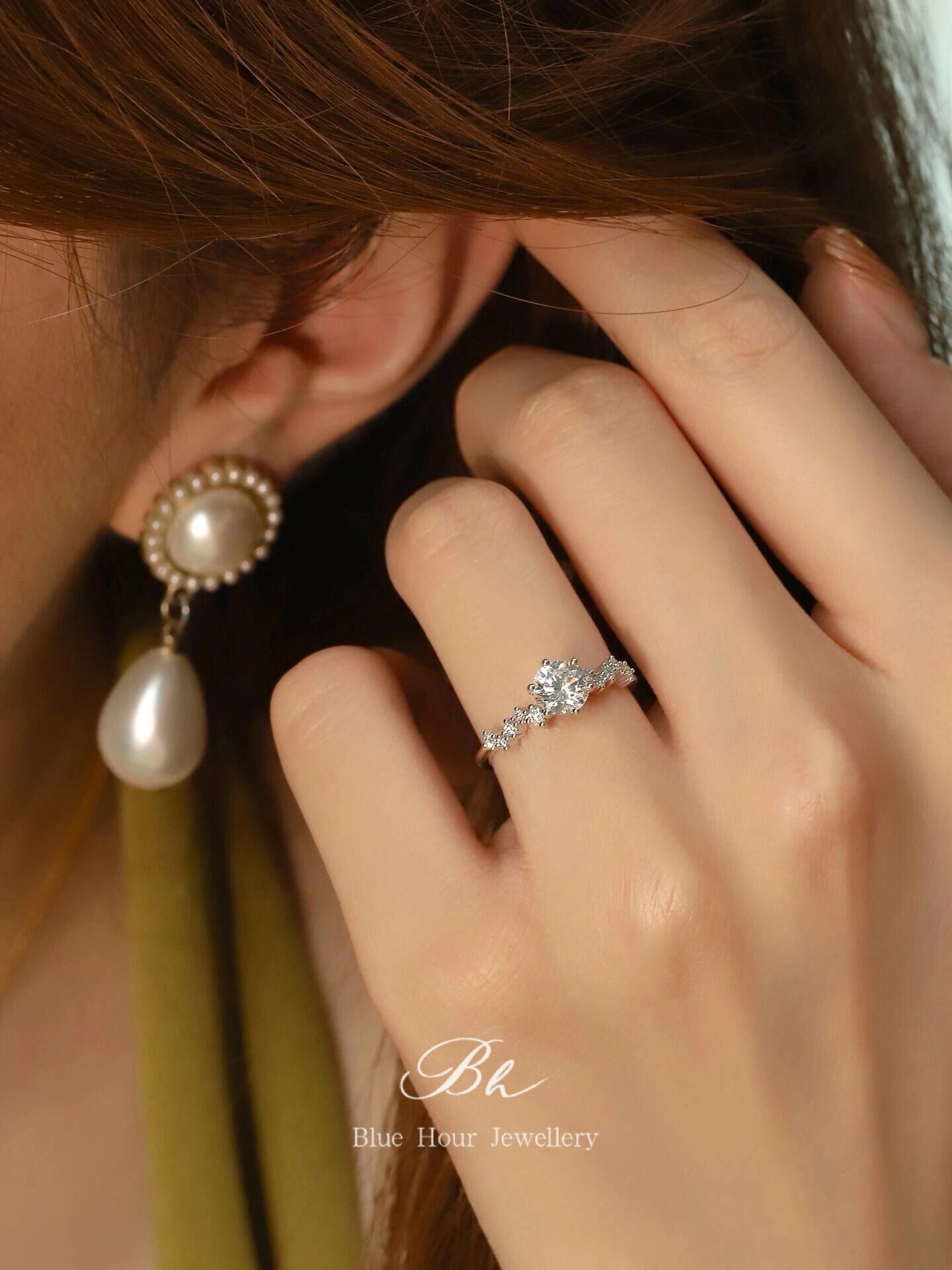ラウンド 流れ星 1ct モアサナイト キラキラ ゴージャス リング 指輪 人工ダイヤモンド シルバー925 ホワイト 高級感 モアッサナイト