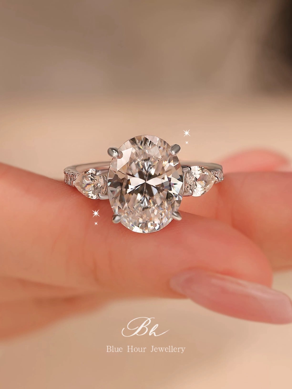 オーバル ビッグ 高炭素ダイヤモンド キラキラ ゴージャス リング 指輪 ハイカーボンダイヤモンド 人工 シルバー925 ホワイト 高級感 エンゲージリングにも