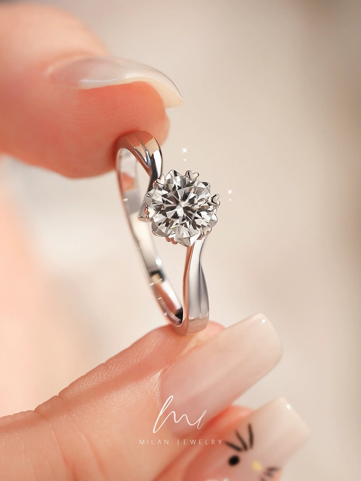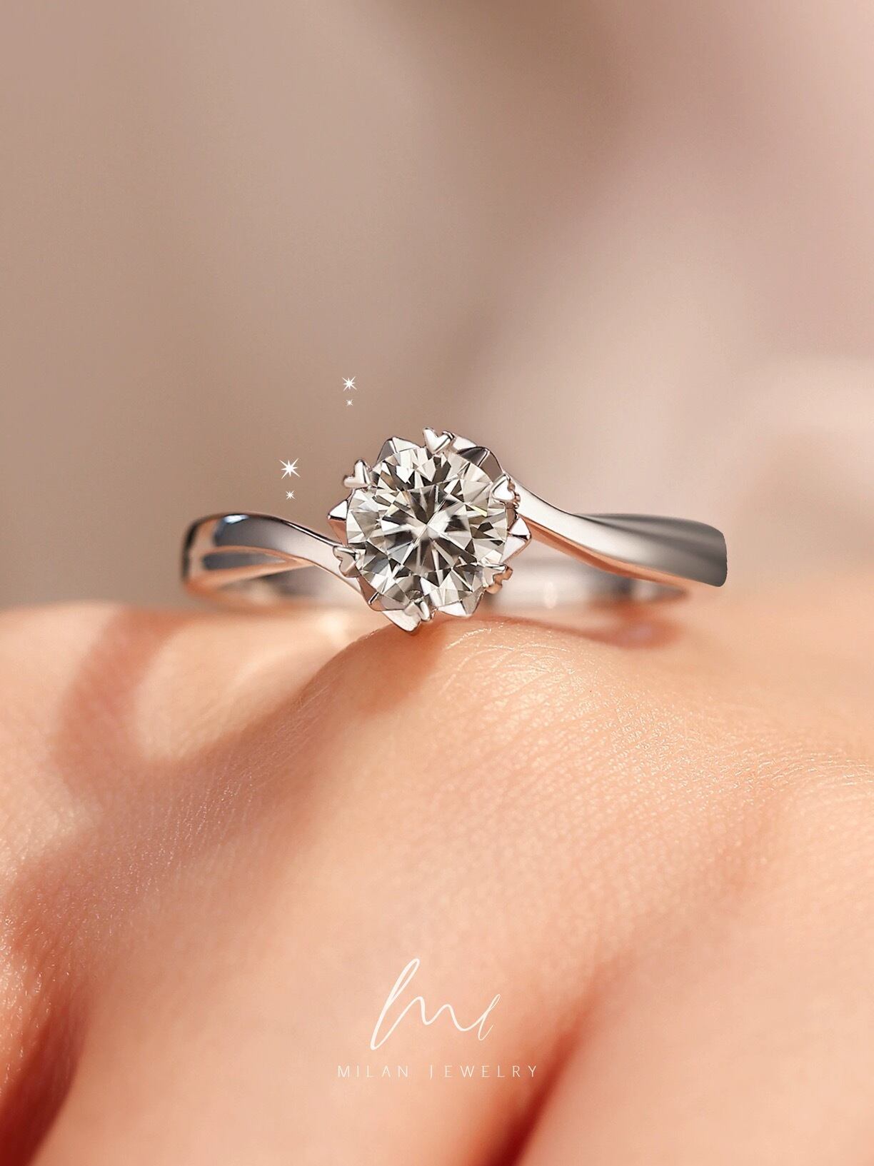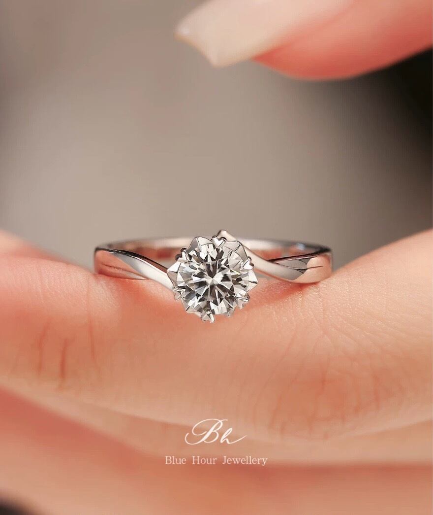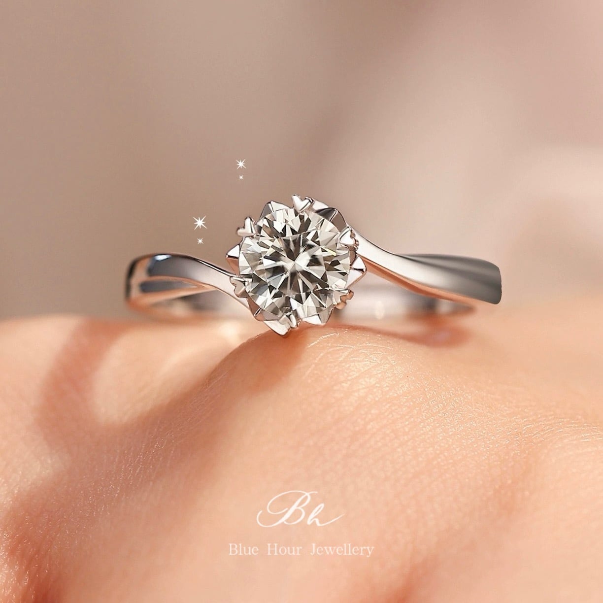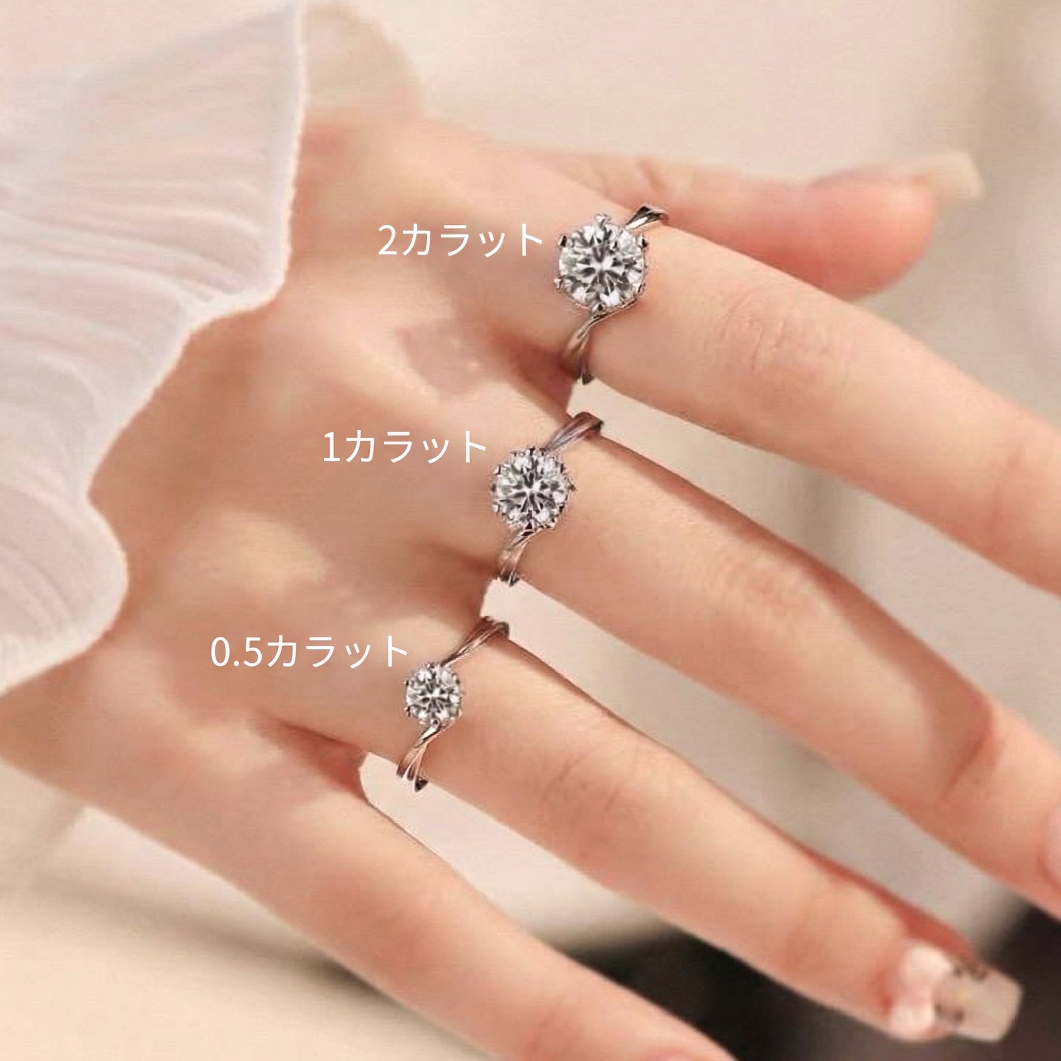 ラボグロウンダイヤモンド 1粒 0.5/1/2ctラウンド キラキラ ゴージャス リング 指輪 シルバー925 ホワイト 合成ダイヤモンド 婚約指輪にも 高級感 ハート爪 6本爪 一粒