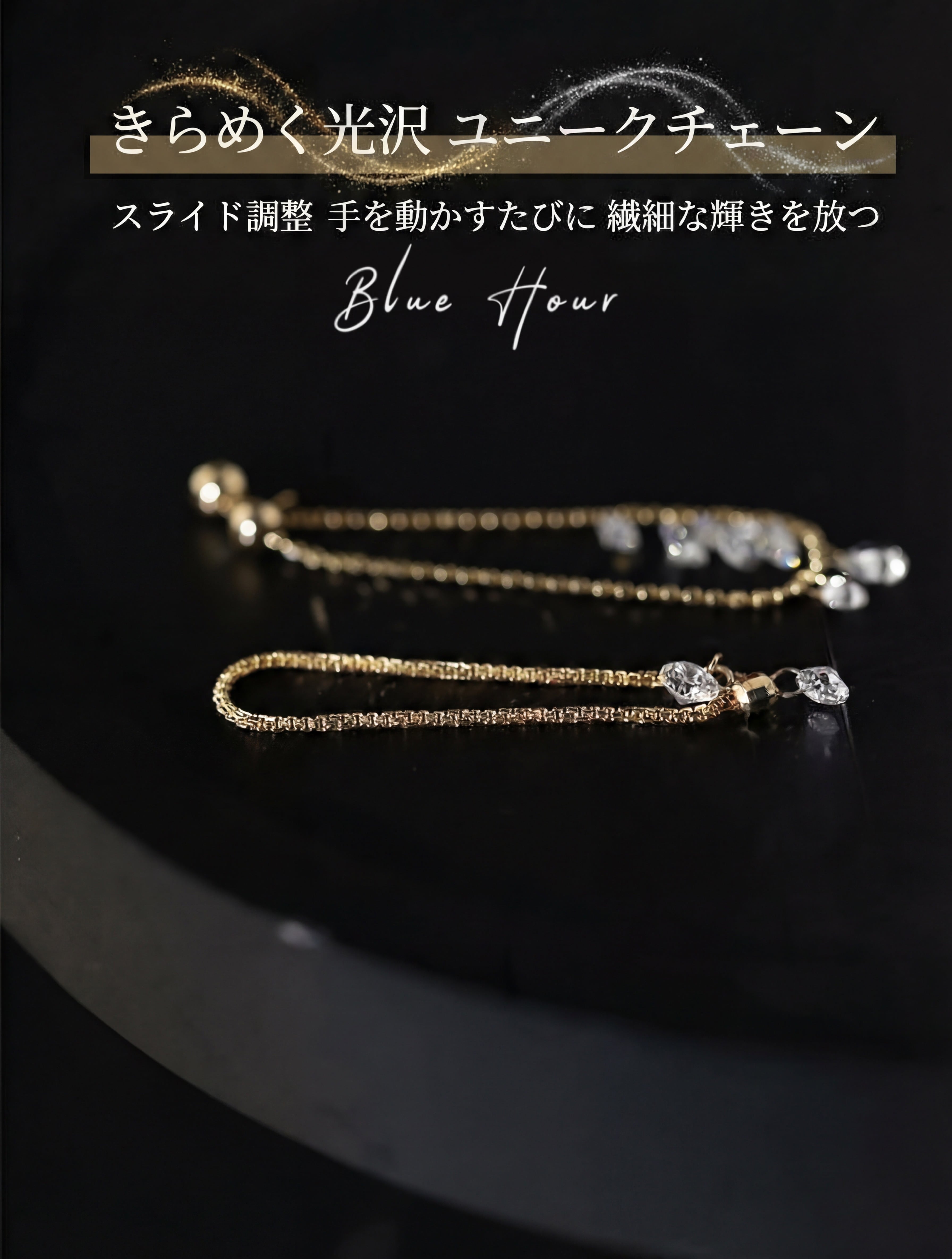 独特なチェーンに揺れる一粒ダイヤ。