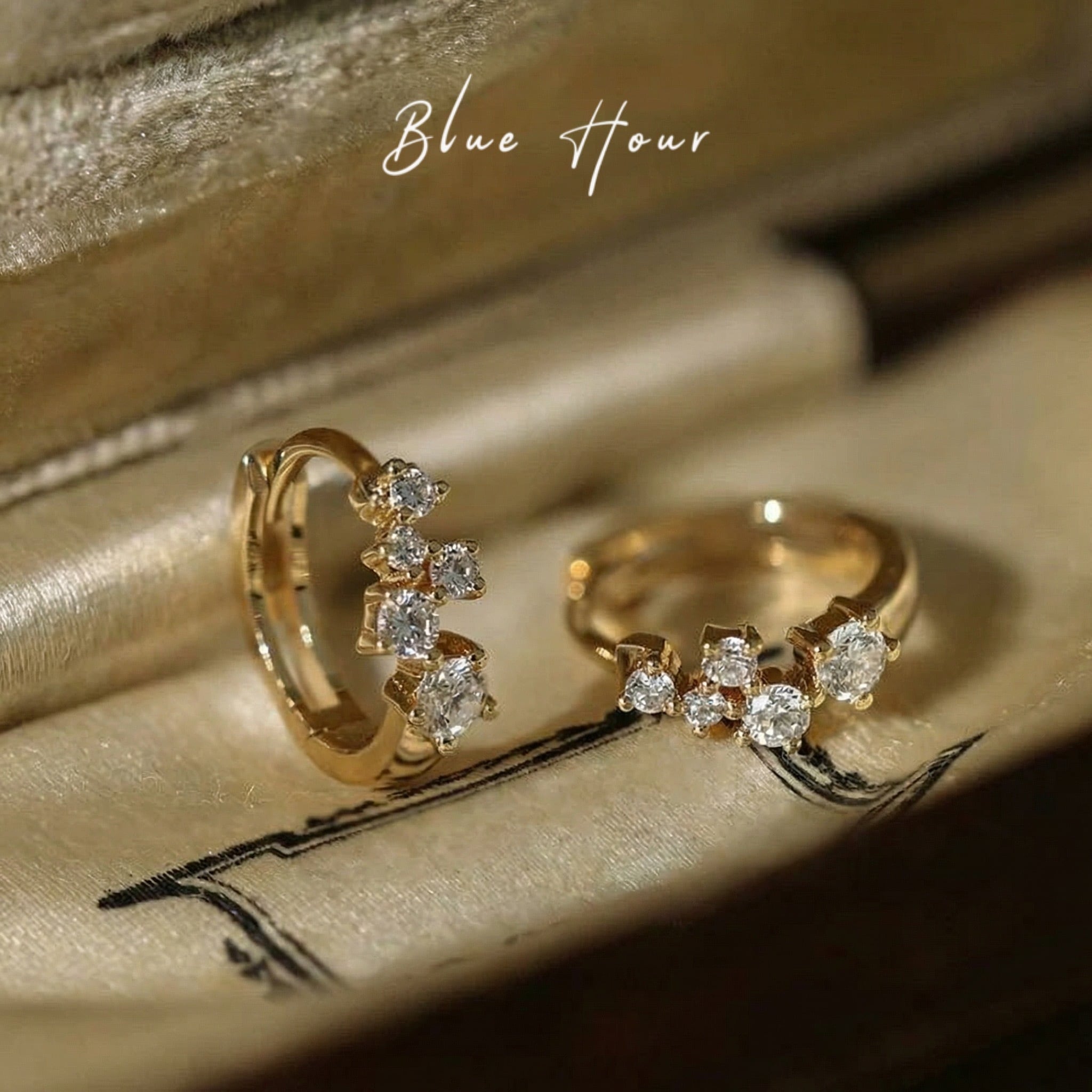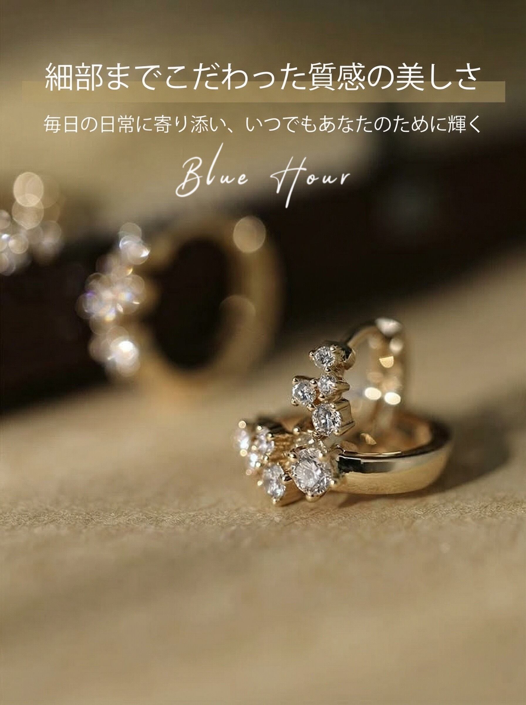 きらめきがゴールドの輪の上に散りばめられ、洗練された雰囲気が漂います。