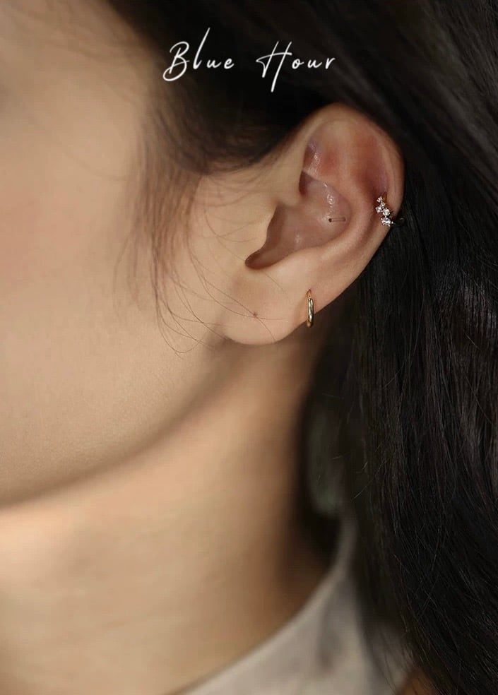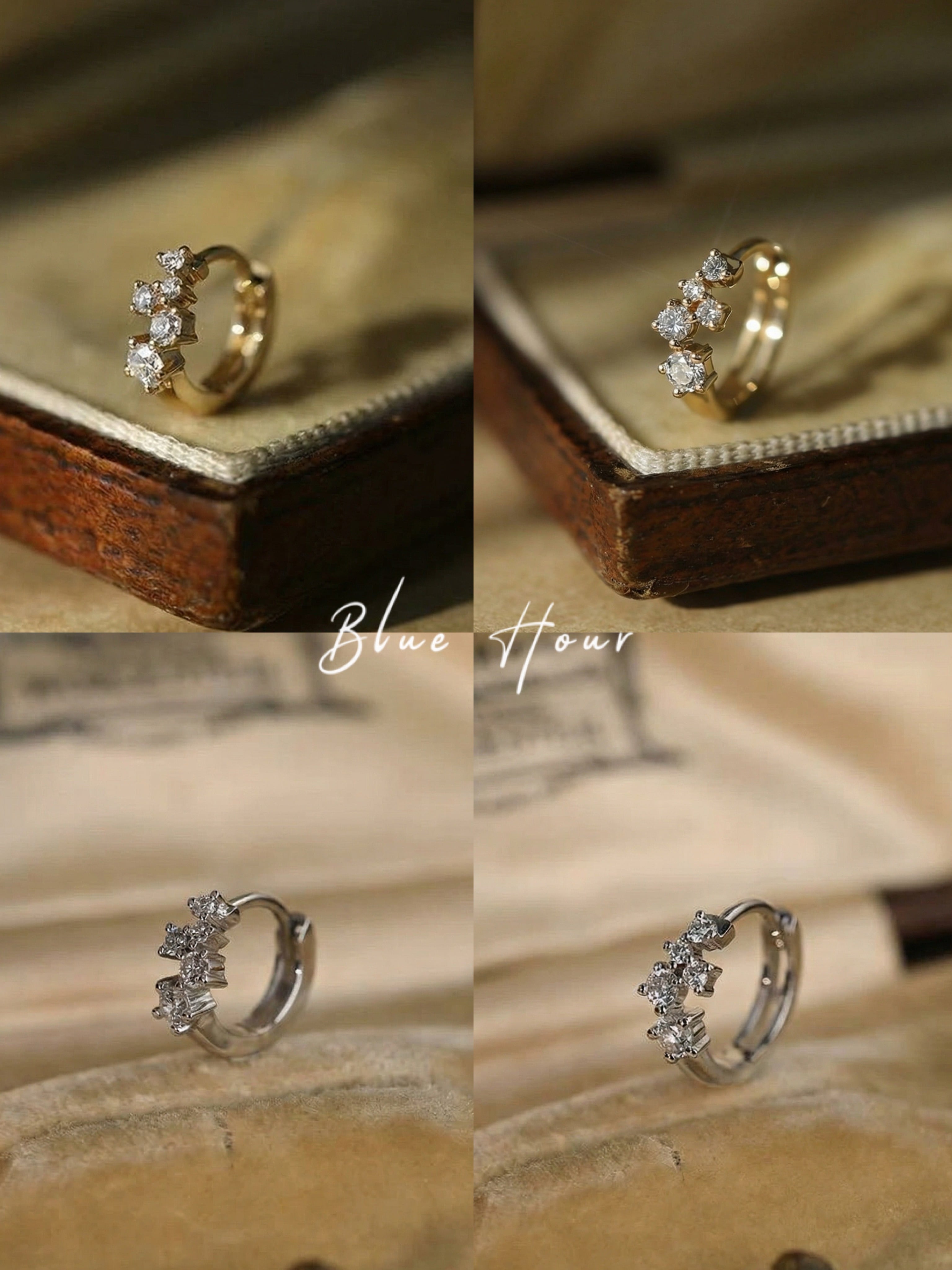 ラボグロウンダイヤモンド 片耳 K18 星の輪 フープピアス 複数サイズ展開 キラキラ ゴージャス シンプル 小ぶり 18金 イエローゴールド