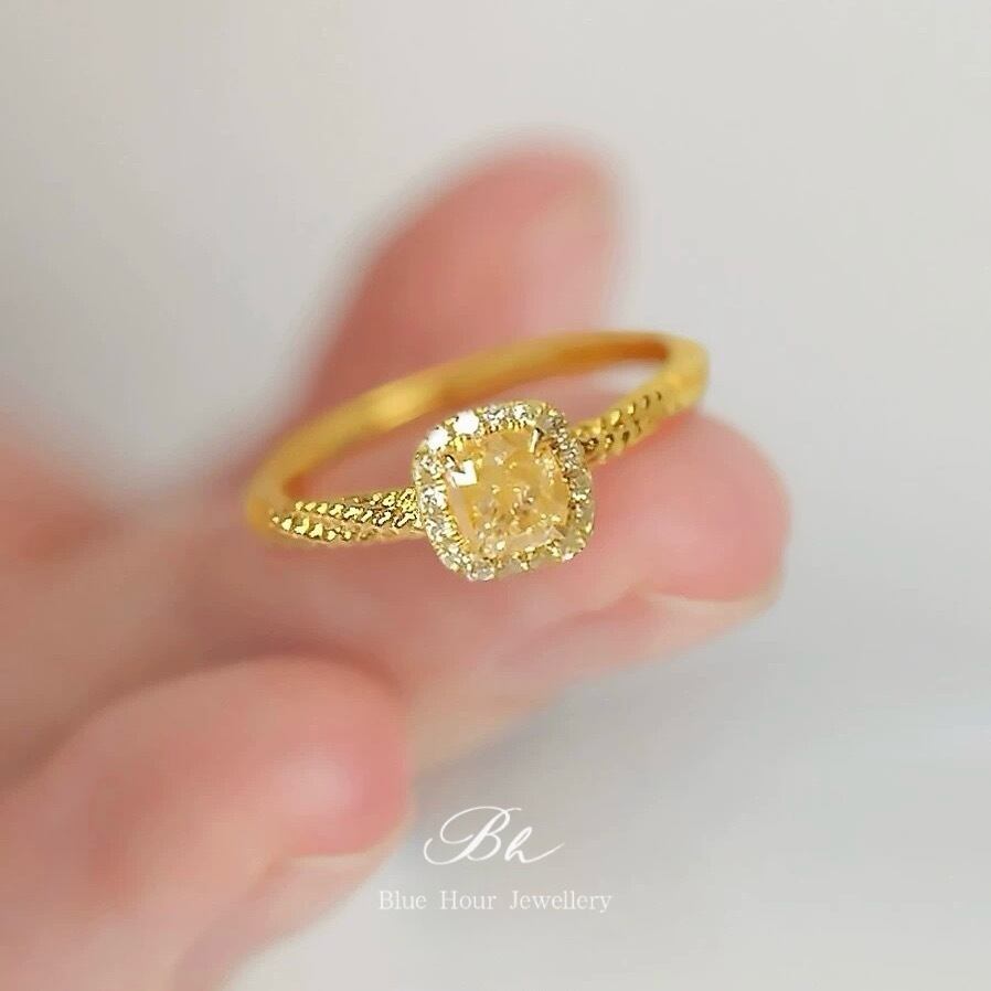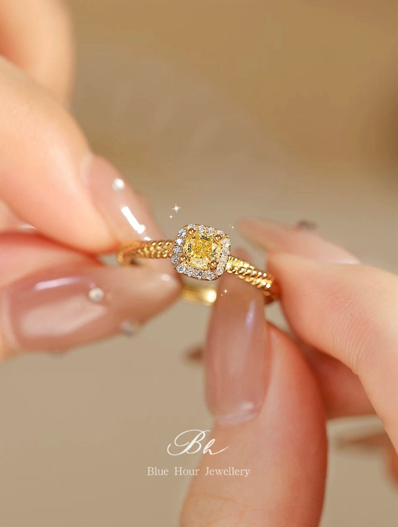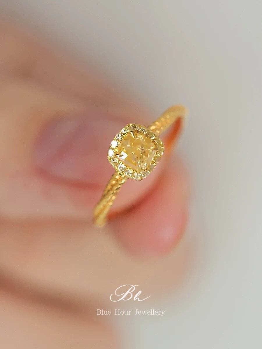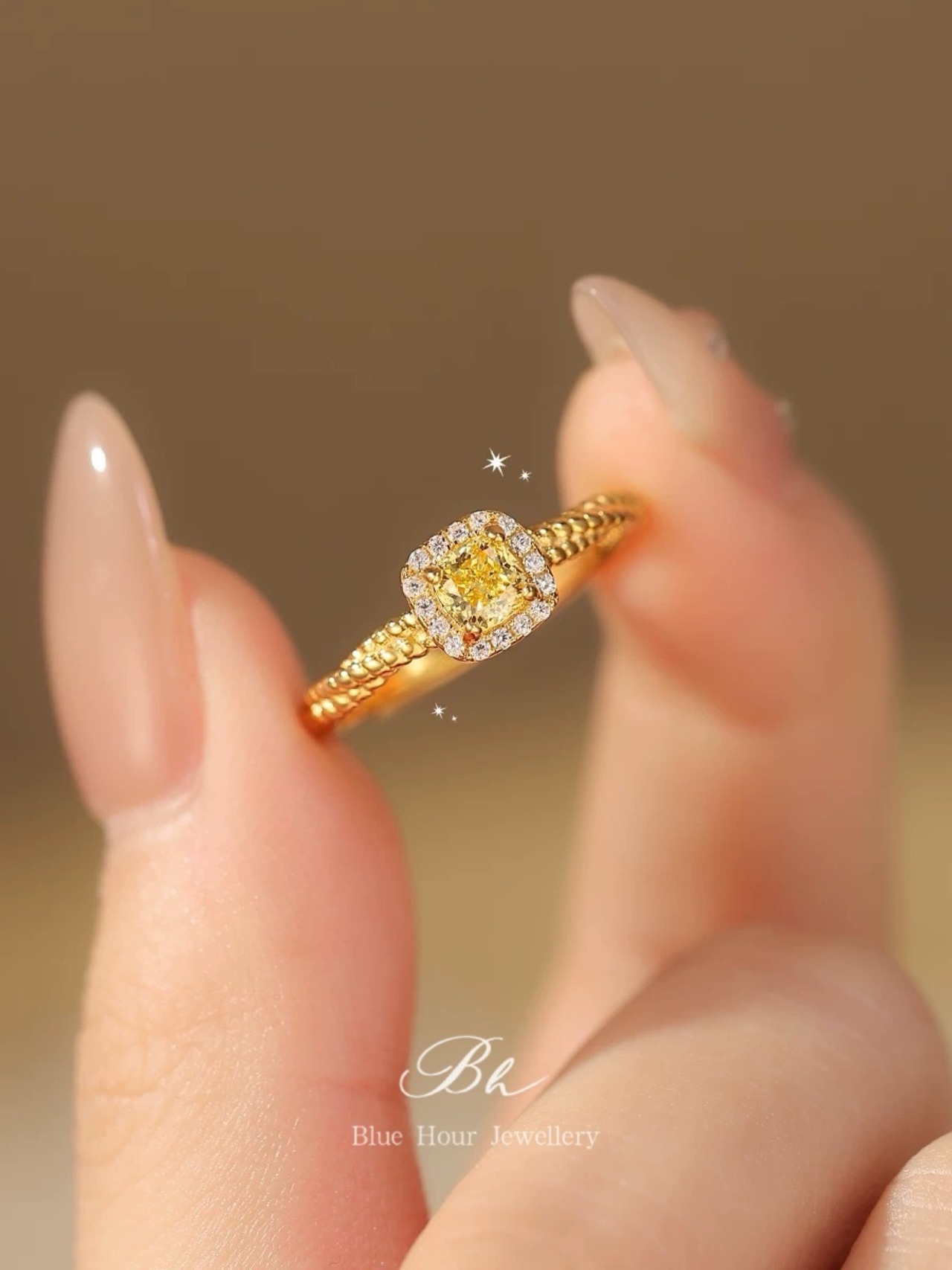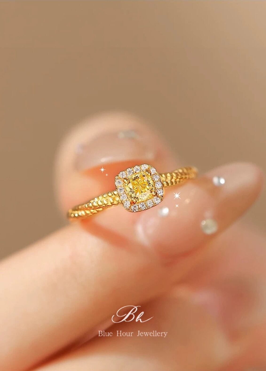 とてもやさしく上品な雰囲気を持った、イエローのスクエアデザインリングです。