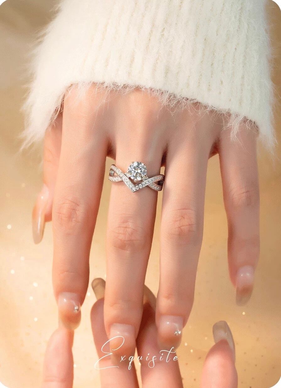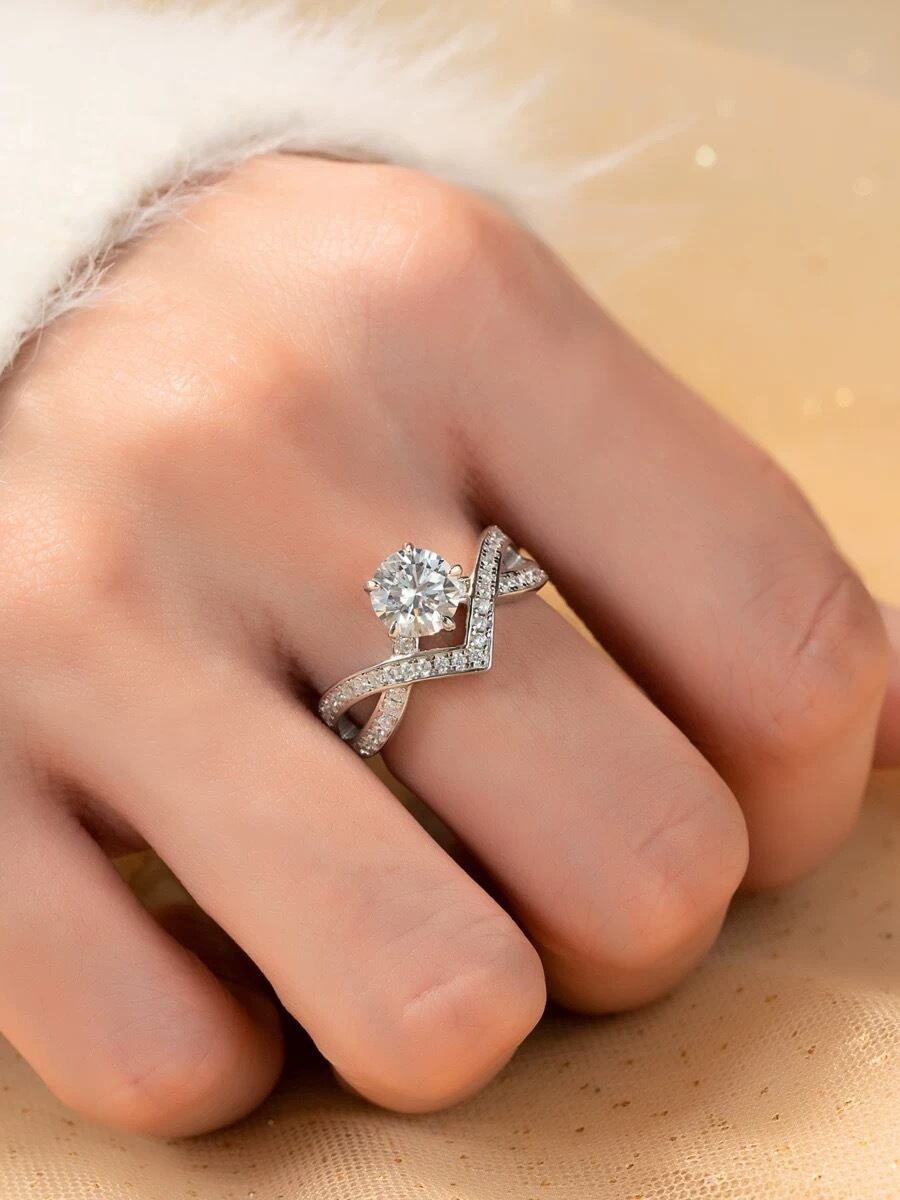 モアッサナイト V字 クロス キラキラ クラシック 1ct ゴージャス ラグジュアリー シルバー925 リング 指輪