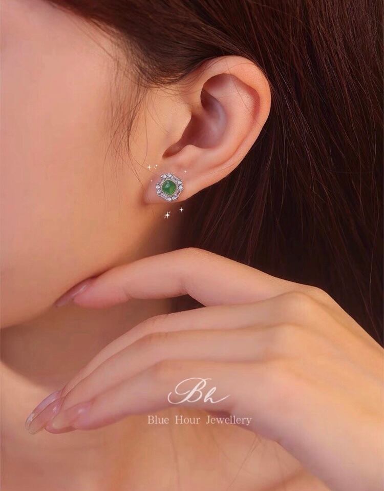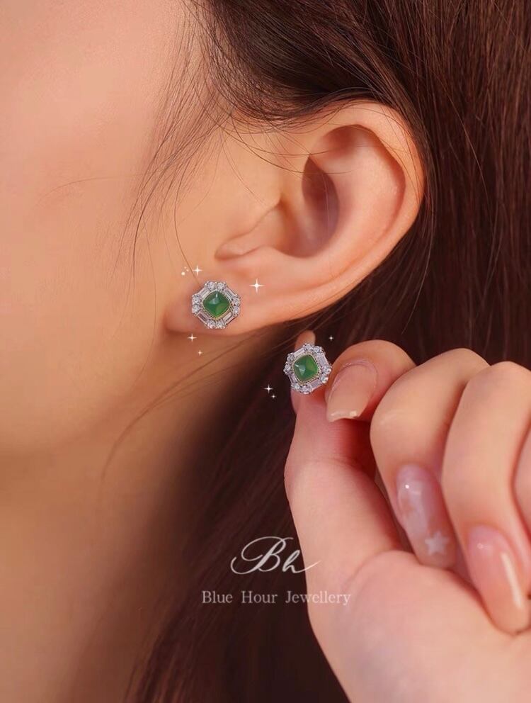 ラボ合成クリソプレーズピアス。