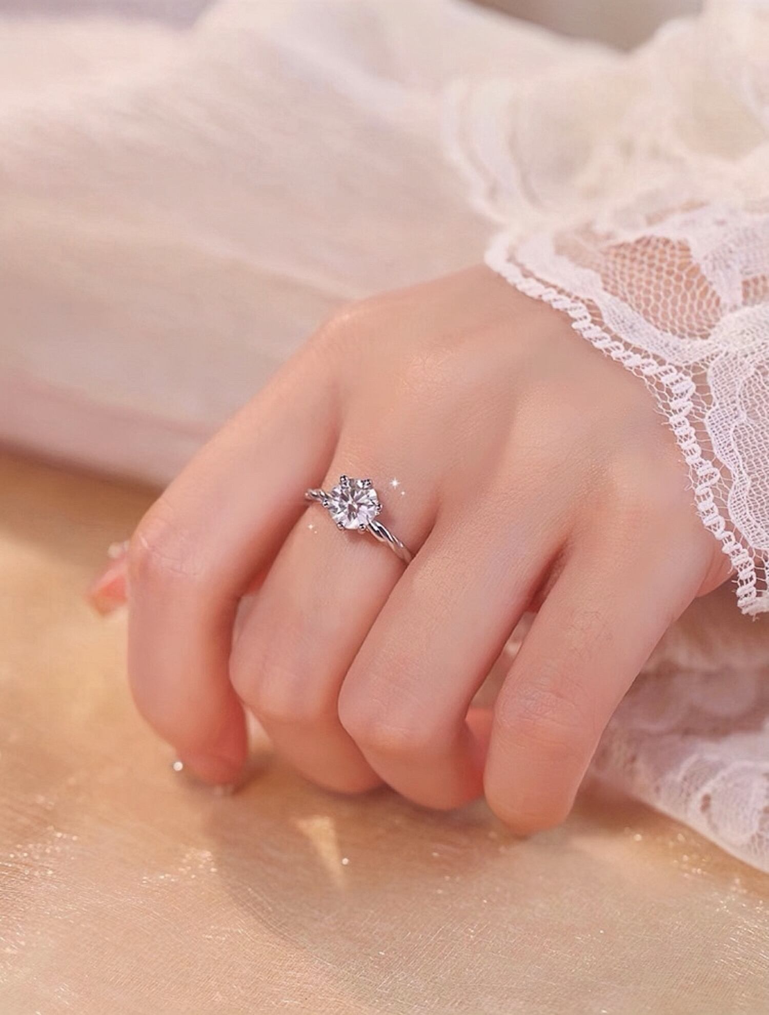 輝くリングはいつでも人々を特別に興奮させます。1カラットがちょうどいい大きさ。独特なテクスチャーの質感でデザインを失わないです。この絶妙でクラシックな 6 本爪モアッサナイトリングはエレガントで流行に左右されません。