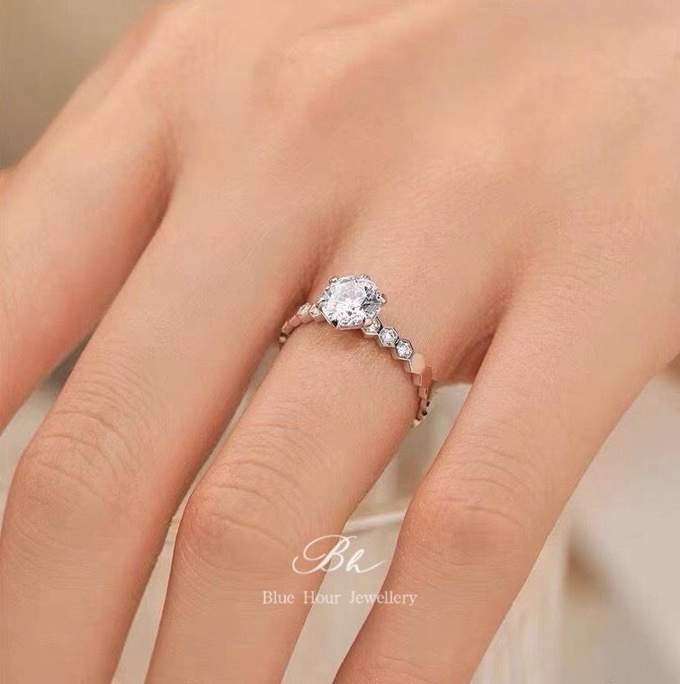 モアッサナイト(Moissanite)は、ダイヤモンドより強い輝きを放つと言われております。