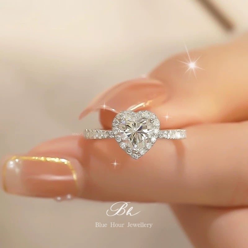 モアッサナイト ハート ヘイローリング 1ctキラキラ ゴージャス ラグジュアリー モアサナイト 人工ダイヤモンド 指輪 シルバー925 メレ ウェディング かわいい 可愛い | Blue Hour Milan